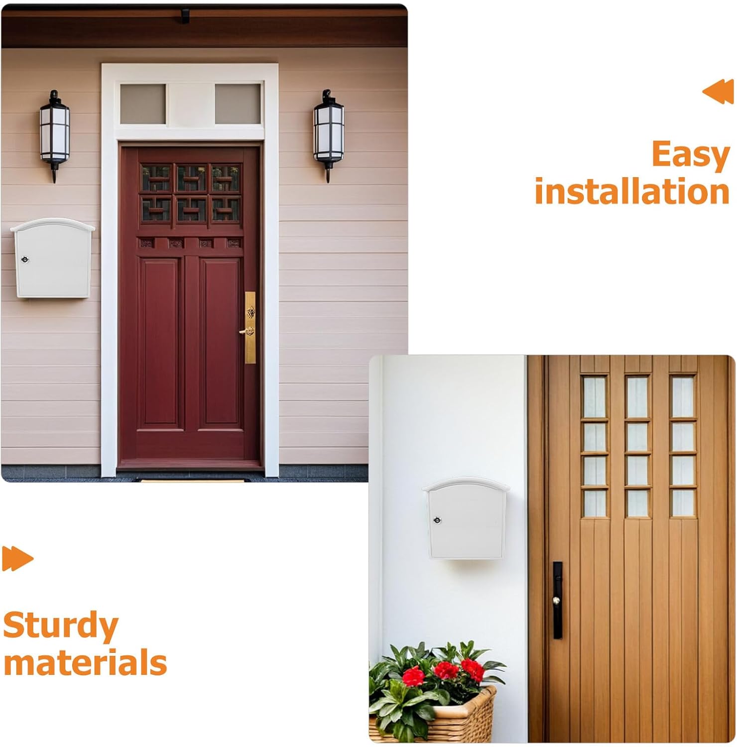 Package Include 2 x Outdoor Mailboxes Characteristics -Spacesaving wall installation: this modern letter box easily mounts to exterior walls, maximizing space efficiency in compact residential or community entryways as a practical wall mount plastic mailbox office mail boxes -Color:White -Bright, easily identifiable color: the decorative wall mail box features a vivid color, helping personnel locate box for office or home quickly -Product Info: Outdoor curved milk box -Size:24.00X24.00X10.50cm/9.43X9.43X4.13in -Durable and : built with sturdy materials, the lockable home mailbox resists daily wear and tear, reducing replacement frequency, making it reliable as an outside locking mailbox for ongoing use -Material:Plastic -Thermal insulated material: made with plastic, this lockable wall mounted mailbox maintains a stable temperature inside, ensuring milk remains at optimal freshness throughout the day, ideal for a plastic mailbox with lockGoods Informationdecorative wall mailbox The vintage locking mailbox design ensures your milk remains dry, protected against rain and temperature shifts.lockable home mailbox Its decorative wall mailbox appearance enhances exterior home decor while the lockable mailbox feature assures safety and privacy, perfect for homes, offices, or apartment complexes.mailbox for doorside This rustic wall-mounted mailbox is crafted as a curved plastic mail box, ideal for securely storing fresh milk deliveries at your doorside or entryway