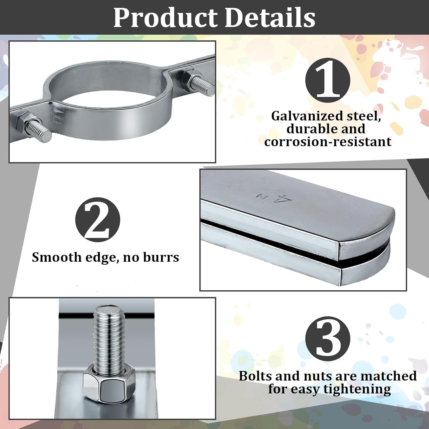 Features: Strength and Sturdiness: The remarkable strength and sturdiness of our are due to its galvanized steel material. This ensures it can withstand heavy duty usage and continue performing to its full extent. Modern Silver Appearance: In addition to its functional properties, the silver color matches many architectural without looking out of place. The silver color adds to the visual appeal. Specifications: Material: galvanized steel Color: silver Size: Length: 13 inches Width: 1-3/16 inches Package includes: 4 x Riser clamp Notes: Manual measurement, please allow slight errors on size. The color may exist a slight difference due to different screen displays.