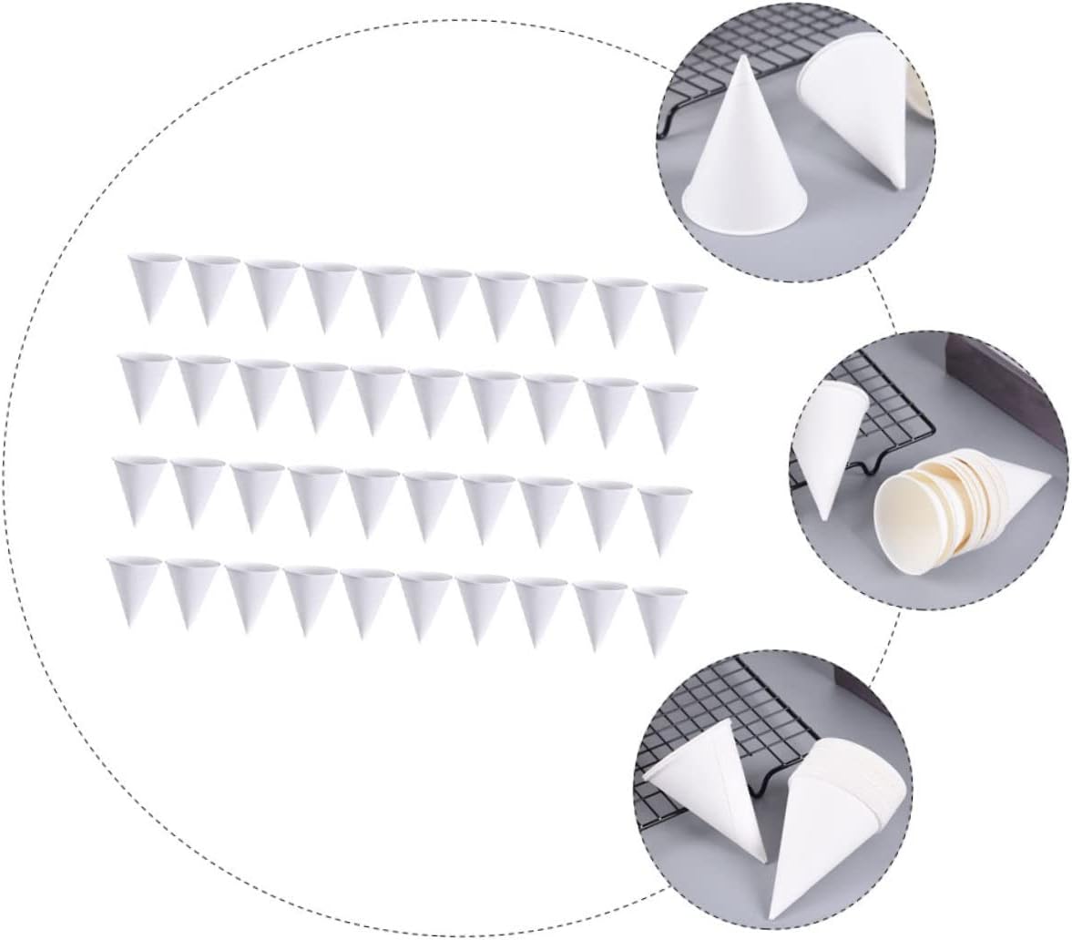 Package List 400 x Paper Drinking Cups Characteristics -Size(6 oz): 10.00X7.50X7.50cm/3.93X2.95X2.95in Party Cutlery -Color: White Drinking Cup -Material: paper Disposable Cup -Including enough quantities to meet your application, with an Disposable Cutlery. -This is a practical disposable paper cup that will bring you more convenience Cone Shape Cup. -Fine workmanship and excellent texture, strong durability and practicality Water Holder. -The creative cone shape design can store cold drink, fruit, and ice cream Drinking Holder. -Made of paper material, lightweight and gentle, comfortable and practical Paper Holder.Goods InformationDrinks Container Made of craftsmanship and safe paper materials, it has excellent durability and practicality.Dessert Shop Supplies With the unique cone shape, it can play a decorative effect and better cater to the joyous holiday atmosphere.Water Holder Are you looking for convenient, practical and water glasses? Our products will be your choice.Cone Shape Cup This is a great cup that will bring you more convenience