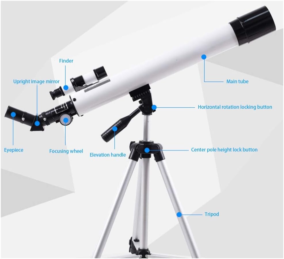 Setting up the telescope is a breeze and will have you observing in no time. Even on your first time out you can assemble the telescope and its accessories in just a few minutes. It's one of the most educational and fun gifts for children adults for Birthdays Christmas New Years and more. Specifications: Optical system: refraction Focal length: 600mm Eyepiece: 25mm 6mm Teleconverter: 3X Starfinder: 5X24 mirror: 45 degree full upright image Stand: Aluminum alloy multi-section telescopic tripod Package Content Main tube tripod Constellation and instructions Finder Upright Image mirror 25mm eyepiece 6mm eyepiece Astrolabe Extender Sun filter Product certificate and warranty card If you have any concerns please contact us by Amazon Message at any time