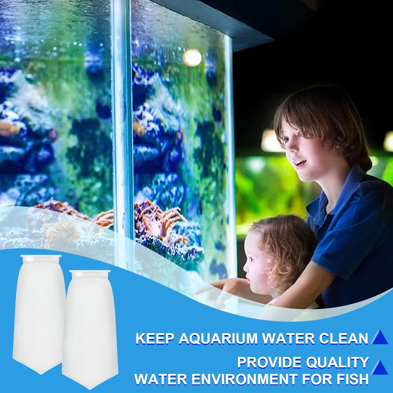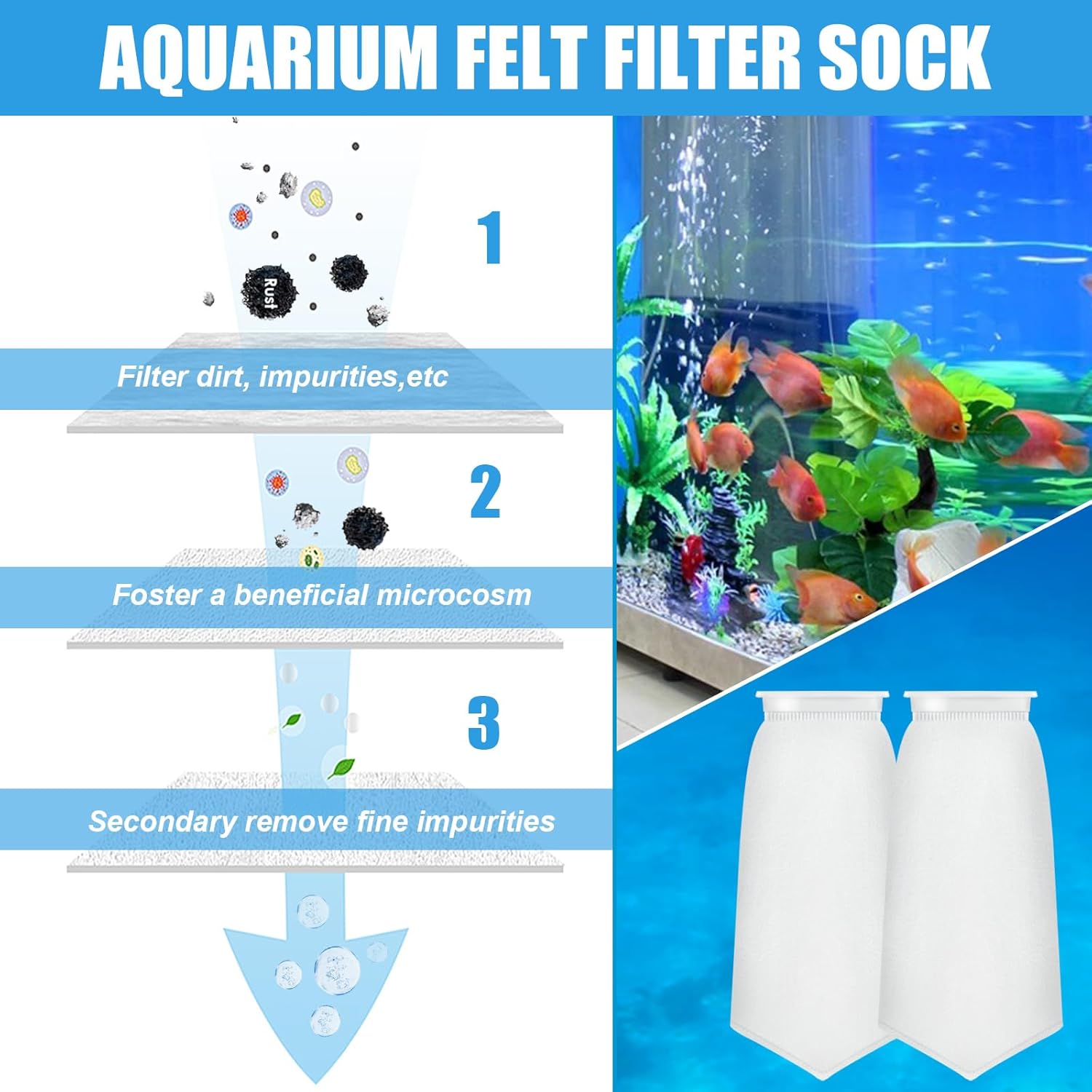FEATURES๏ผ Suitable for both freshwater and saltwater tanks Can be cleaned for multiple uses Optimal Water Quality for Healthier Fish PACKAGE INCLUDES: 8*felt filtration bags SPECIFICATIONS: Material: polyester fiber,pp; Color: white Size:4.4*6.9*16inch