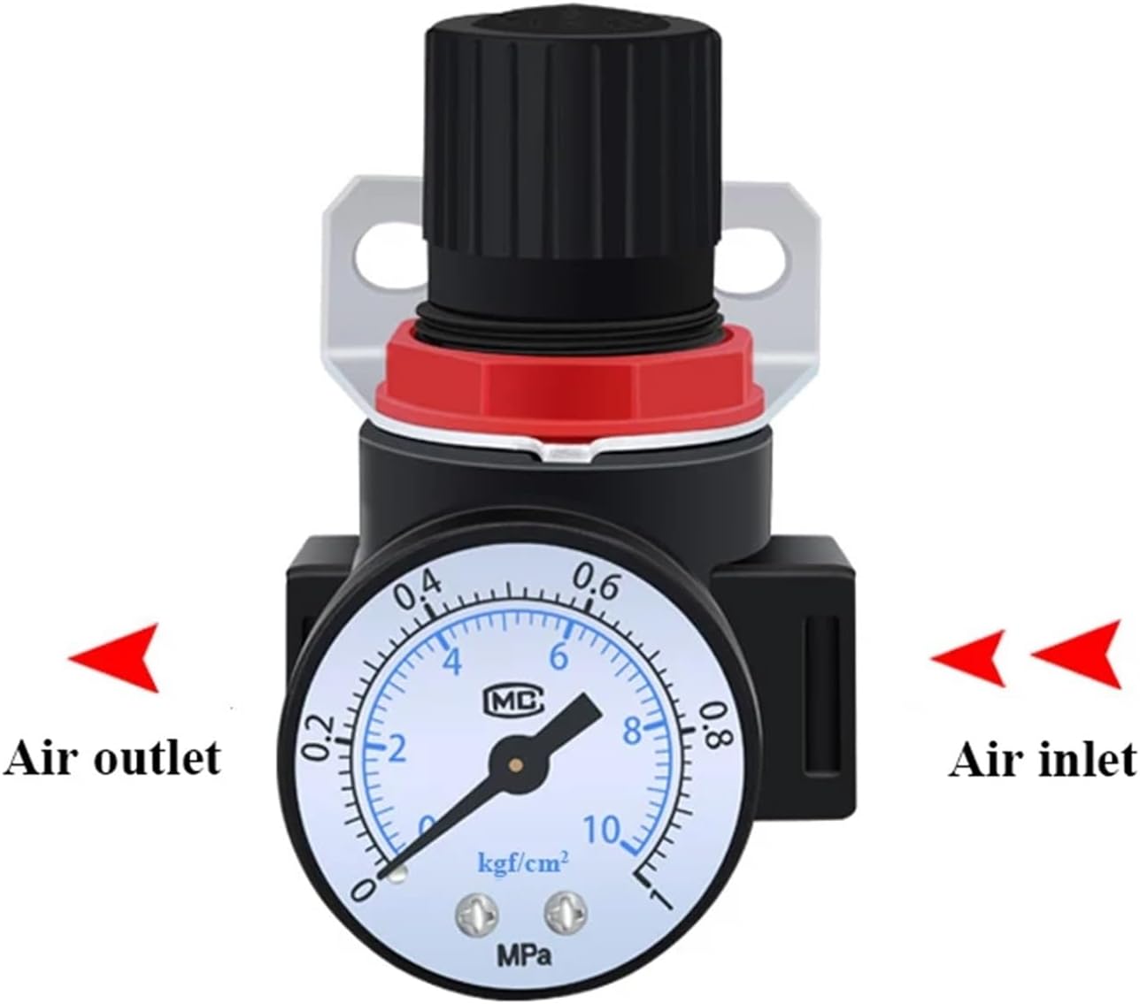regulatorType : FilterModel Number : AR-2000Port size : PT1/4'',about 12.5mmPressure range : 0.05~0.85Mpa(7~130Psi)Maximum adjustable pressure : 0.95MpaWorking Fluid : AirWorking temperature : 5~60