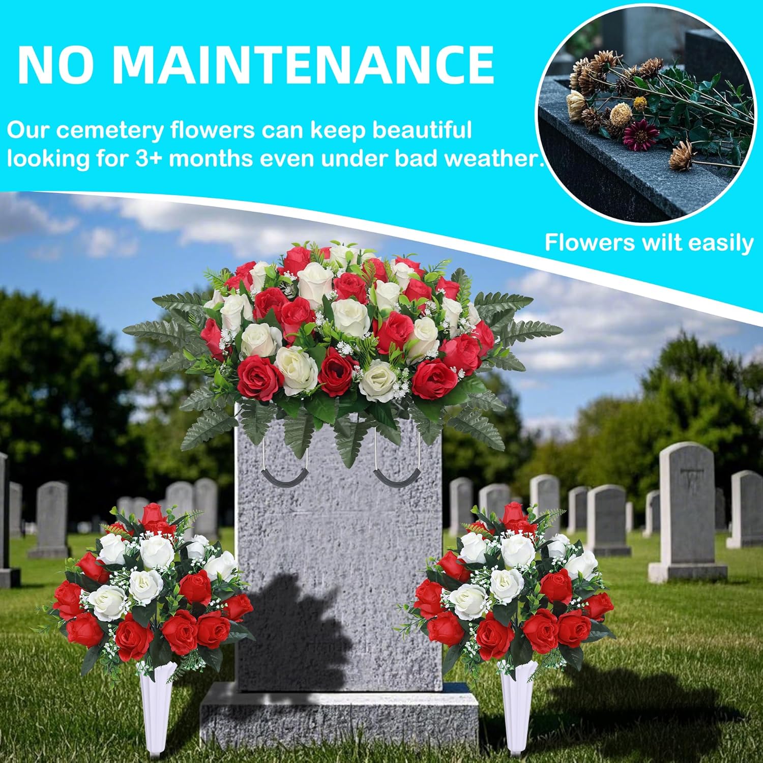 | Included Components | Cemetery Memorial Flowers ,, Vase, artificial flower saddle |