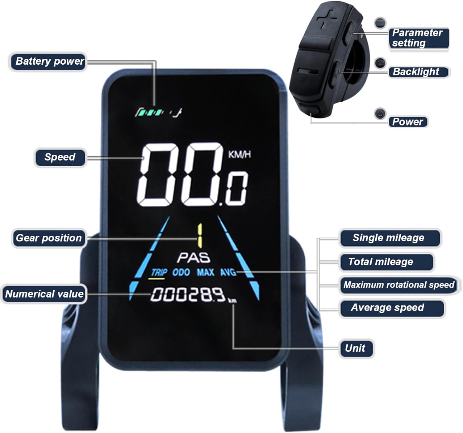 Description: Bike Odometer and Speedometer integrates an advanced ebike display and wireless bike speedometer into one compact, reliable device designed to elevate your cycling experience; its large, high-contrast waterproof LCD ensures effortless reading of essential metrics such as current speed, trip distance, total odometer, while the wireless design provides hassle-free installation and neat handlebar setup without cable clutter; engineered for durability with weatherproof materials, this bike speedometer wireless withstands rain, dirt, and rough outdoor conditions, making it ideal for all-season riders; perfectly compatible with a wide range of ebikes, this ebike LCD display maximizes convenience with easy-to-use button controls and versatile mounting options, allowing cyclists to confidently track their performance and enjoy every ride outdoors. Features:. -Color: Black. -Material: Acrylic. -Size: 9.5x8.6 cm/3.7x3.4 inch. Note:Manual measurement, please allow slight errors on size.The colors may exist slight difference due to different screens. Package Including 1 * Ebike Display