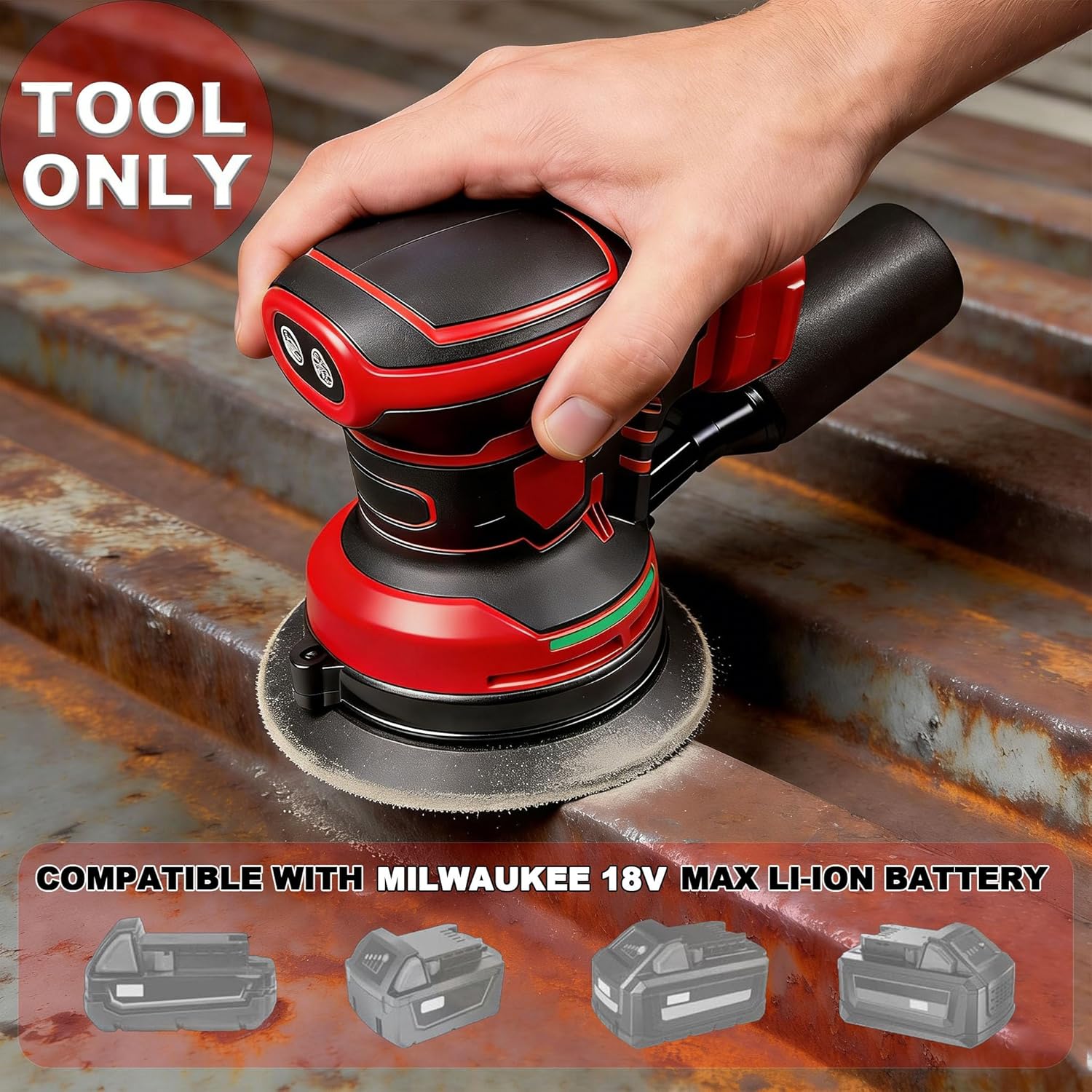 Battery Powered Orbital Sander: WeToolGoo cordless random orbital sander compatible for Milwaukee 18V batteries. Such as 48-11-1820, 48-11-1852, 48-11-1865, 48-11-1862 ,48-11-1850R,48-11-1880, etc. NOTE: Battery and charger are not included