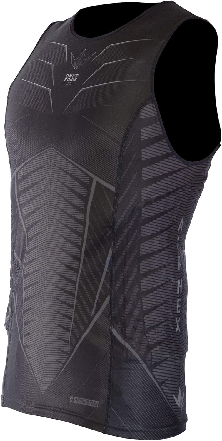 Bunkerkings Fly Padded Compression Wear is constructed from four-way, moisture wicking stretch fabric that moves with and protects your body during dives, crawling and impacts. Lightweight Air Hex pad technology completely eliminates the bulk from wearing traditional pads. Run, dive, crouch, and crawl without restrictions. Variable Air Hex Technology keeps the Fly pads lightweight, breathable, and most importantly allows natural movement while the pads freely flex to protect the impact zones on your body. The individual Air Hex layers are designed with variable thickness from a mere 6 to 8mm thick, depending on the impact protection zone.