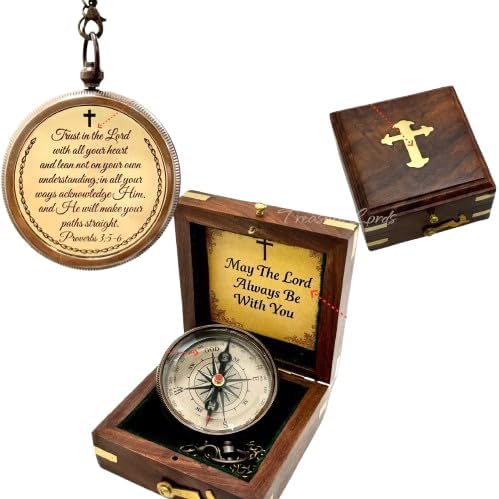 Celebrate faith, direction, and inner strength with this exquisitely crafted engraved brass compass, featuring the beloved Bible verse from Proverbs 3:5-6: "Trust in the Lord with all your heart and lean not on your own understanding; in all your ways submit to Him, and He will make your paths straight." This antique-style brass compass is more than just a functional navigational tool—it's a powerful symbol of spiritual guidance, purpose, and Christian faith. Whether you’re stepping into a new season of life or offering support to someone who is, this Christian gift for men, women, or teens serves as a daily reminder that they are never alone—God is always directing their path. Crafted with durable, high-quality brass and expertly engraved with scripture, this compass is designed to last for generations. The spiritual message etched onto the face inspires courage, trust, and obedience, making it a meaningful Christian encouragement gift for friends, family members, graduates, or anyone navigating life’s journey. Beautifully presented in a polished wooden gift box, this compass adds an extra touch of elegance and sophistication. It’s ready to gift right out of the box—no wrapping required. Whether displayed on a bookshelf, carried in a pocket, or placed on a desk, this compact compass makes a beautiful conversation piece and a faith-based keepsake that can be cherished for years. This engraved scripture compass is an ideal choice for many special occasions. Whether you’re shopping for a Christian graduation gift, a baptism or confirmation keepsake, a Father’s Day present, or a Christmas gift for a spiritual man, this compass speaks volumes through its craftsmanship and biblical truth. Perfect for: Christian Graduation Gifts for Boys & Girls Baptism and Confirmation Keepsakes Inspirational Gifts for Men of Faith Religious Christmas or Easter Presents Encouragement Gifts for Teens and Young Adults Christian Travel Accessories and Faith-Based Gifts Decorative Pocket Compass with Scripture Whether used as a decorative compass, an heirloom religious keepsake, or a motivational token of faith, this Christian engraved compass merges practical functionality with deep spiritual meaning. Let it be a guiding light for those you love—and a beautiful way to share the message of trusting in the Lord.