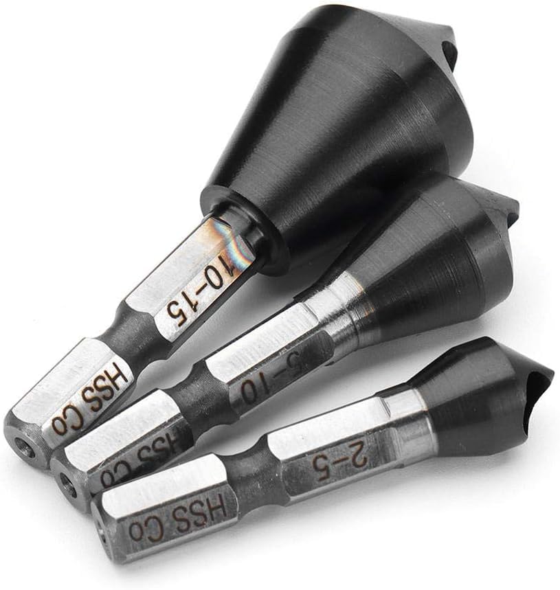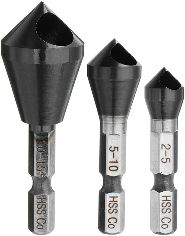 Specification: Material: HSS-Co/M35 Coating: TiAlN Coating Hardness: HRC89 Size: 2-5mm/5-10mm/10-15mm Shank Size: 1/4" Hex Shank Chamfer: 90° Uses: High-speed steel cobalt / M35 TiAIN coating (Suitable for Aluminum, insulation board, PVC board chamfer,steel, aluminum, sheet metal, carbon steel, 304 stainless steel, etc.) - Industrial-grade TiAIN coating (More than 4241and 6542 high-speed steel materials, live longer!) Features: 1. The same containing cobalt high speed steel material, the surface after a TiAIN coating, 3 times can prolong service life. 2. The TiAIN coating super high temperature resistance, can be in the case of without coolant, long time use, suitable for dry type high speed cutting. Industrial Grade TiALN Coating,TiAlN coating surface will form Al2O3 which form a hard protective layer when drilling.(Perfect for high speed drilling) 3. HSS - CO high speed steel after heat treatment + TiAIN coating surface hardness up to 89 degrees. 4. TiAIN coating can do not need to add cooling fluid, more suitable for aerial work where the work is not convenient to add cooling water systems. 5. 90 degree chamfer, CNC CNC, CBN grinding process. 6. Higher accuracy sharper achieve drilling burr 7. Internal chip removal: To eliminate the phenomenon of flying metal shavings Package Included: 1 Piece x Countersink & Deburring Bit