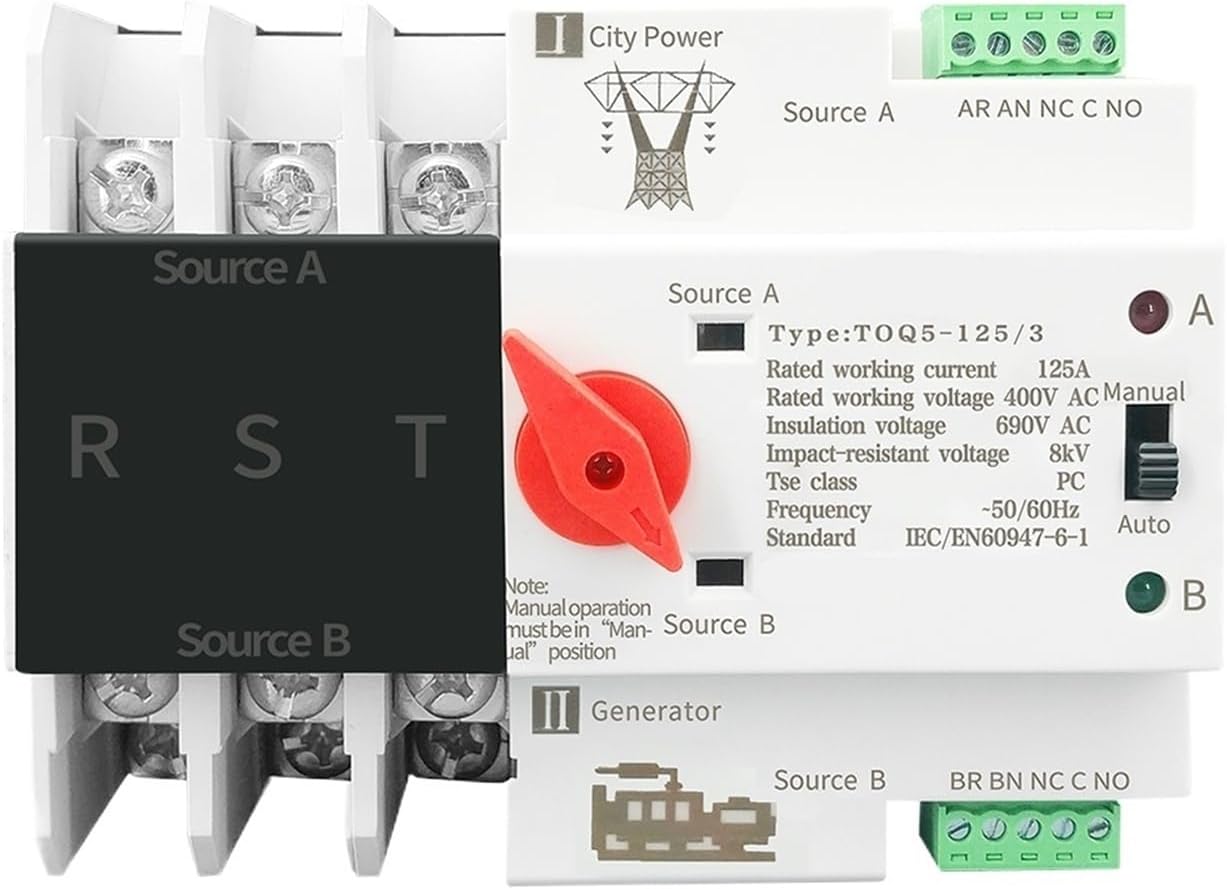 Din Rail 2P 3P 4P ATS Dual Power Automatic Transfer Switch Electrical Selector Switches Uninterrupted Power 63A 100A