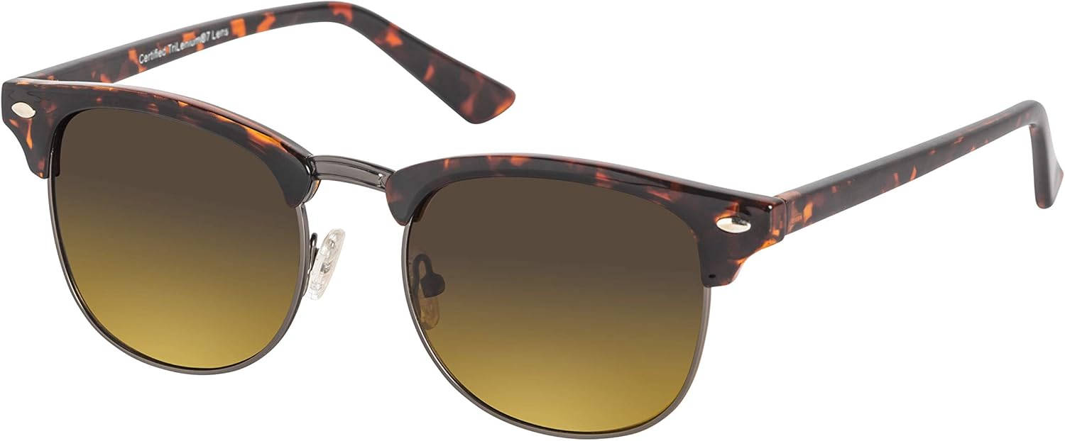 With its sleek, semi-rimless frame, the Palmer is the perfect combination of iconic club and polished intellectual style. But like all Eagle Eyes sunglasses, style is just part of the package. The Palmer’s gradient lenses are made with TriLenium 7 Polarized technology, developed from original NASA optic technology to block scattered blue light and 99.9% of the sun’s harmful UV rays. The subtle but defined brow-line of the lightweight Grilamid TR-90 frames are available in deep, shiny black or rich, dark tortoiseshell. The dark metal nose is equipped with adjustable silicone nose grips for comfort, and the Palmer’s 2x Scratch-Guard oleophobic (smudge-proof) and hydrophobic (water-repellant) coatings mean these glasses will stay put, stay comfortable, and stay stylish—no matter what you’re doing. For other semi-rimless options, check out the gunmetal Tate or the oversized Blair … or explore our other club-style frames. Order the Palmer directly from Eagle Eyes and receive a microfiber soft cleaning case and a zippered hard case to keep your favorite new glasses in perfect condition.