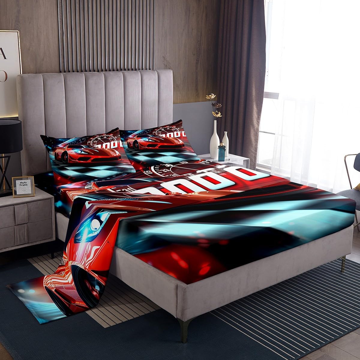 Our bedroom decor bed sheets set look with the vivid stylish and elegant print specifications: Twin Sheet Set: 1 twin fitted Sheet 39 inch x75 inch x16 inch, 1 twin flat sheet 66 inch x96 inch and 1 pillowcase 20 inch x30 inch Full sheet set: 1 full fitted sheet 54 inch x 75 inch x 16 inch, 1 full flat sheet 81 inch x 96 inch and 2 pillowcase 20 inch x 30 inch Queen sheet set: 1 queen fitted sheet 60 inch x 80 inch x 16 inch, 1 queen flat sheet 90 inch x 102 inch and 2 pillowcase 20 inch x 30 inch deep pocket fitted sheet with elastic all around materials: microfiber fabric, lightweight and soft design: With vibrant and novelty designs and 3d print technique, this duvet cover is very suitable as room decor for boys and girls care instructions dry clean preferred; machine washable, use cold water on gentle cycle, tumble dry low