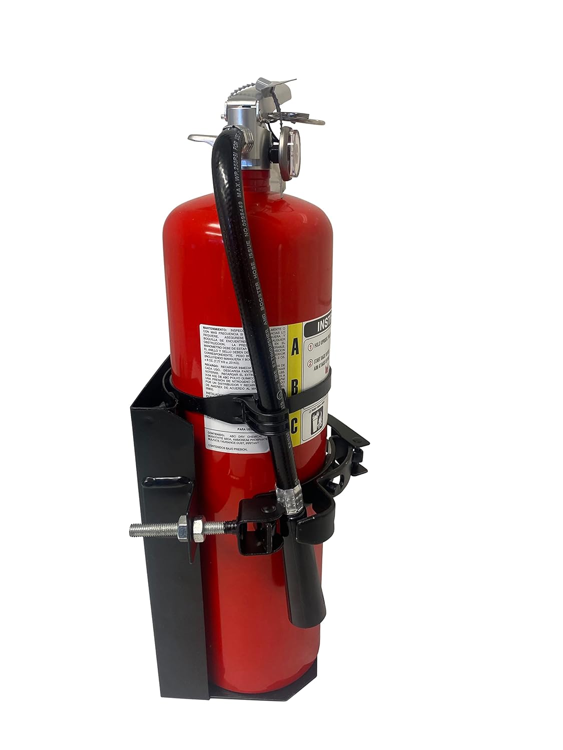 INCLUDES: (1) Fire Extinguisher Mounting BracketFEATURES: Fire ExFire Extinguisher Brackettinguisher BracketSPECIFICATIONS: Color: Black Material : Steel Capacity: 10 lb. Cylinder Diameter: 5 In. to 5-1/4 InFire Extinguisher Bracket, Bracket Type Heavy-Duty, Capacity 10 Lb., Cylinder Dia. 5 In. To 5-1/4 In., Metal, Extinguisher Type Dry Chemical, Material Steel, Color Black, For Use With Marine, Vehicle Brackets