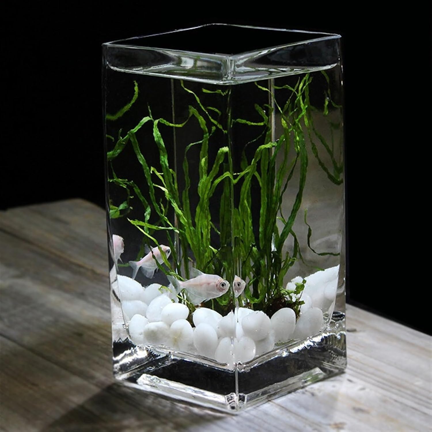 Square High Translucent Glass Fish Tank with Lid Tropical Fish Tank Hydroponic Vase Flower Vessel Desktop Small Fish TankProduct name: Simple desktop fish tankProduct material: glassApplicable scenarios: desktop, dining room, home, office, dining table, living room, TV cabinet1. Due to the difference of light and shooting angle, there may be slight chromatic aberration, please understand.2. Please confirm the color before purchasing.3. Product photos do not include products other than products.4. Manually measure the size, there may be some small errors, please refer to the actual product, thank you.This aquarium is versatile can be used as a fish tank, terrarium, turtle tank, insect breeding .
