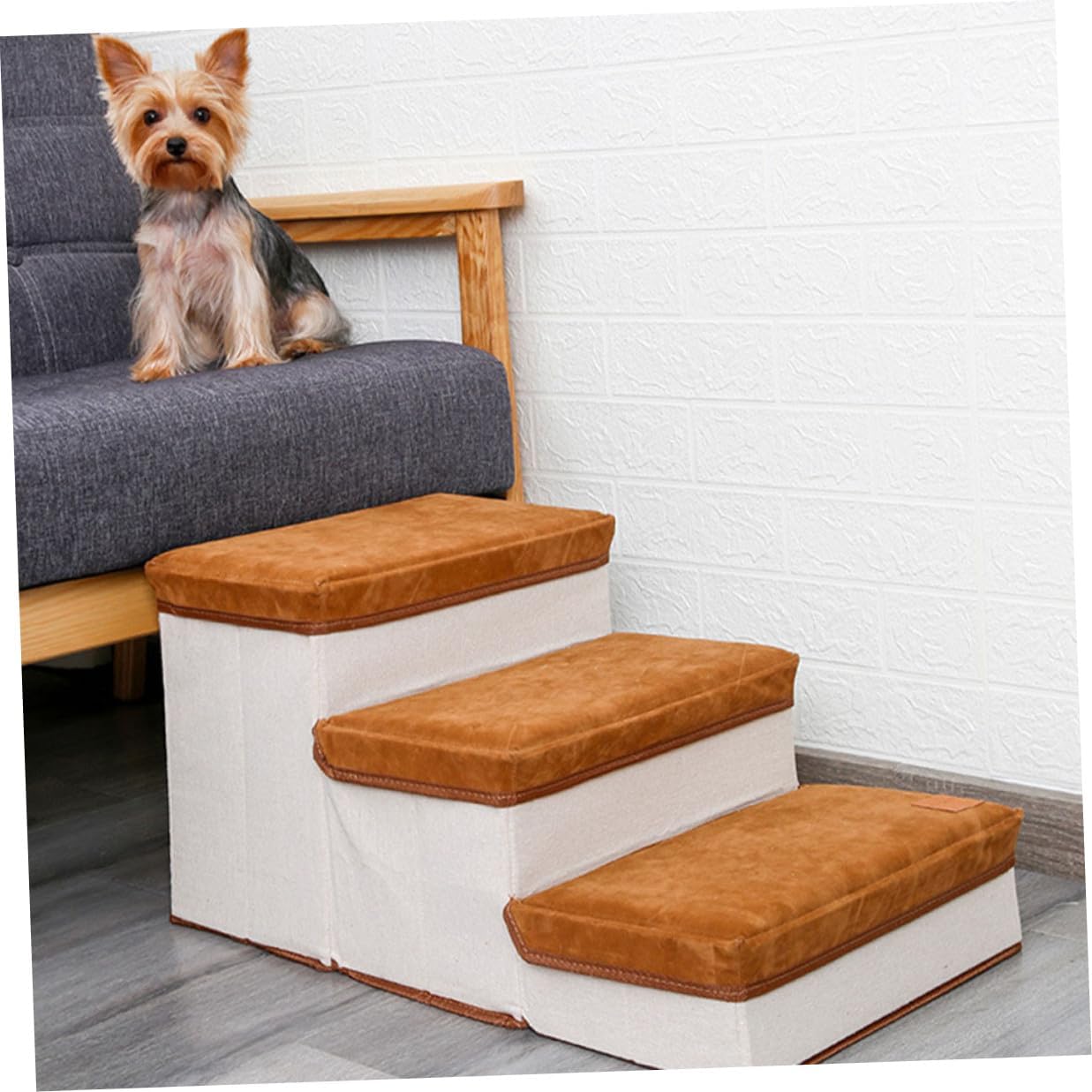 Package List 1 x pet stair Characteristics - Color: Brown -Product Info:Dog stairs - Size: About 60.00X35.00X30.00cm/23.58X13.76X11.79in - Material: Lint and cotton cloth - And it features the large-capacity storage space to store dog clothes, traction, blankets and nursing tools Foldable Pet Stair. - It can be contracted when not in use, and it does not take up space Dog Stair. - A perfect accessory for helping your or kitty reach that high bed or couch Pet Playing Stair. - The pet stair is both a dog's stairs and a storage box for dogs' objects Dog Ladder. - The pet step adds a sturdy bottom plate to get a sturdy staircase for dogs Pet Supplies.Goods InformationFoldable Pet Stair Our stairs are the perfect accessory to help pets reach that high bed or couch! Made with mattress-grade cushioning to pressure on paws and joints.Puppy Stair Soft and comfortable, flexible, prevent pet from being injured
