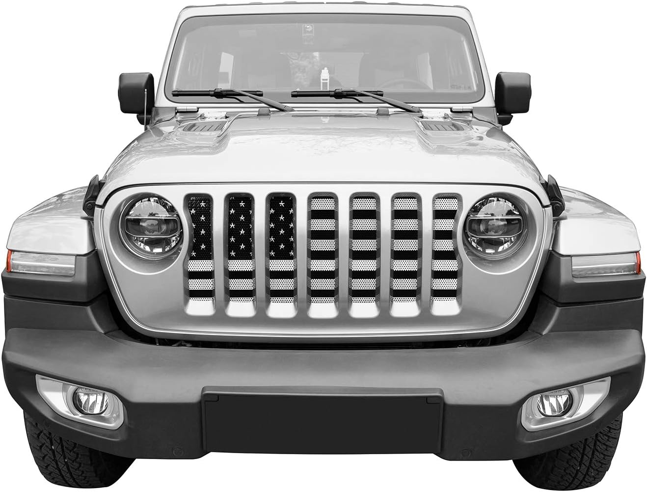 Unique Grille Design and Extra Protection. Show your love for both your country and your 4-legged furry friend with this Insert. The graphic on this insert is printed using UV-ink and is then applied with an automotive-grade clear topcoat. This ensures that the design won’t fade or chip—even after years of exposure to harsh outdoor conditions. Indeed, this insert will be a perfect addition on your Wrangler, providing both extra styling and protection to your front end. High Quality. Made from top-class steel, this Grille Insert ensures that your Wrangler is well-guarded from any road debris that could damage it under normal circumstances. In addition, the distressed old glory design isn’t just there to look good, as it also has a finish that aids in preventing corrosion. Simple Installation. Simply remove your factory grille and plug your new grille insert in.