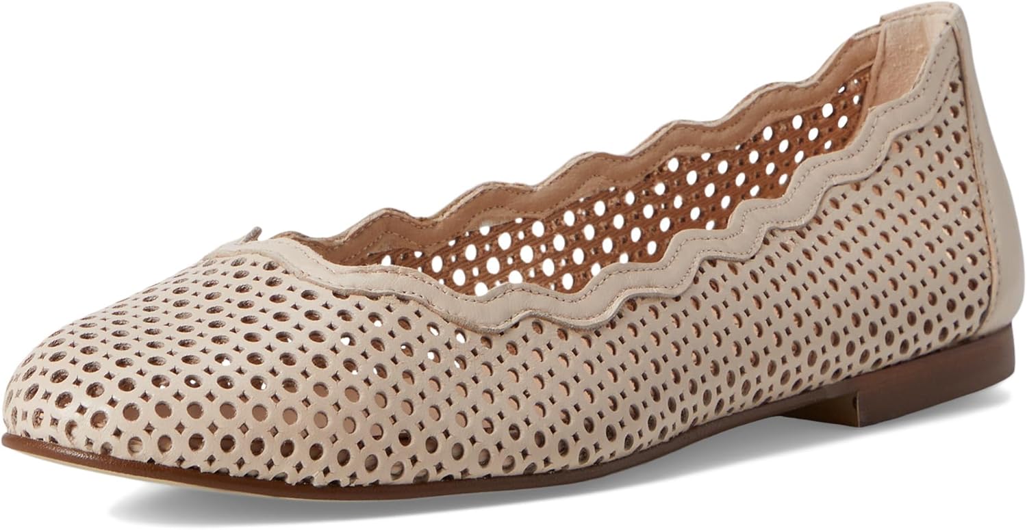 Step into elegance from the office to a dinner date with the French Sole Women's Nymph Flats, crafted for the modern woman who values both style and comfort. These flats feature a sophisticated perforated leather upper that adds a touch of texture and intrigue to your outfit. The scalloped topline and round toe silhouette create a timeless aesthetic, perfect for pairing with everything from tailored pants to chic skirts. Inside, you'll find a breathable leather lining that ensures your feet stay comfortable and fresh, even on the longest days. The Ethylene Vinyl Acetate (EVA) insole offers moderate cushioning, making these flats ideal for all-day wear without sacrificing style. The durable rubber outsole provides excellent grip, ensuring you can confidently stride across any surface. Made in Spain, these flats represent quality craftsmanship and impeccable design. Whether you're navigating a busy day at the office or attending a dinner with friends, the French Sole Nymph Flats are your go-to choice for versatile, chic footwear. Perfect for women seeking a blend of style and practicality, these flats seamlessly transition from professional settings to casual outings, offering unmatched comfort and elegance.