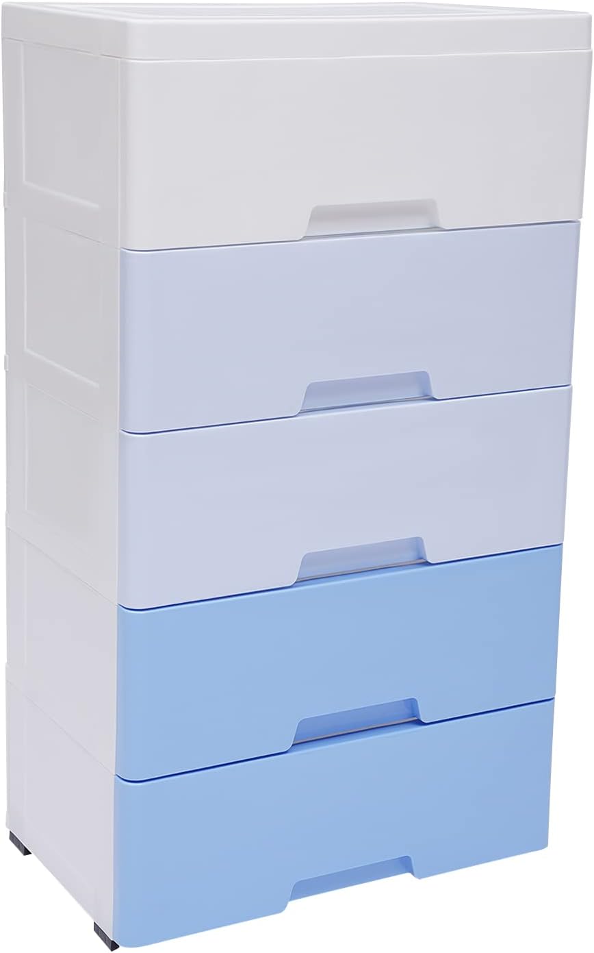 FeaturesHighly Sealed: The storage cabinet is seamlessly integrated, which can effectively provide protection for clothes and items all the time.Reinforced Flat Top: The reinforced flat top is finely made and has a strong load-bearing capacity that allows it to hold many items. And it is not only easy to access but also very space-saving.Curved Handle: The handle of these drawers is a built-in curved handle that fits the shape of your hand. You can easily pull it out and do not worry about the handle loosing. This is both beautiful and practical.Removable Pulley: The pulley at the bottom of the storage cabinet makes it easy to move. If you don't need the pulley, you can also remove it, which is very flexible.Spare Wheel: We provide an extra spare wheel. If the wheel is accidentally damaged, you don't have to buy a new wheel. You just need to put the spare wheel on, which is very convenient and saves money.ApplicationThis item can be used in bedrooms, living rooms, studies, powder rooms, beauty stores, etc. for neatly storing books, office supplies, snacks, household items, etc.SpecificationMaterial: PPColor: WhiteLayers: 5Gross Weight: 4.9kg/10.8lbsNet Weight: 4.1kg/9.04lbsLoad Capacity: 25kg/55.12lbsProduct Size: 45*30*84cm/17.72*11.81*33.07inchDrawer Internal Size: 36*23*14cm/14.17*9.06*5.51inchPackage List10* Side Plates5* Backplates1* Top Plate5* Drawers5* Wheels4* Wheel Covers1* English ManualAll Accessories for Assembly