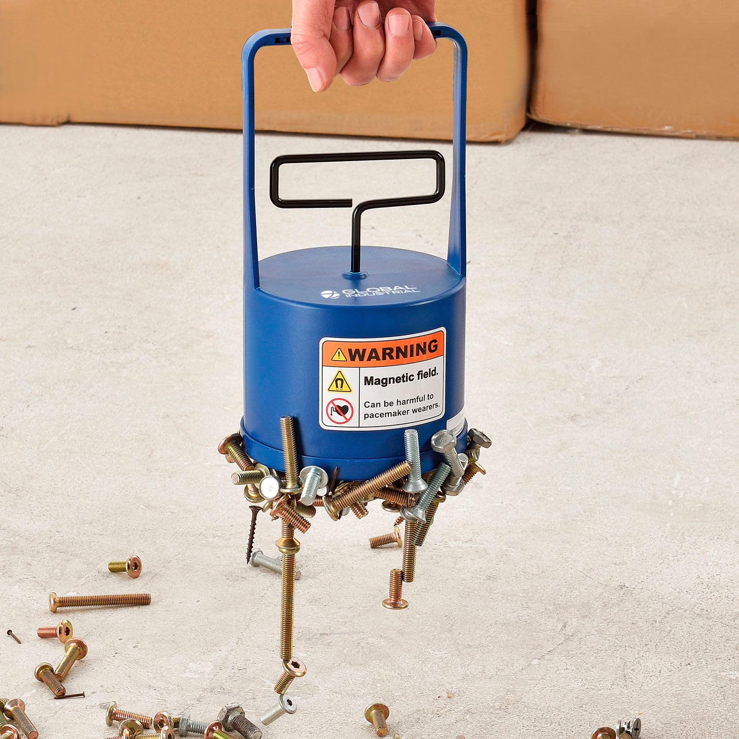 This magnetic bulk lifter offers 35 lbs. of lifting power. This magnetic bulk lifter is lightweight and features an easy-to-grip release handle. Perfect for lifting and transferring small parts, metal shavings, nails, screws, bolts and more. Ideal for cleaning up work desks and tabletop surfaces. Separates ferrous materials from non-ferrous. Simply squeeze handle to release load. , Lot of 1