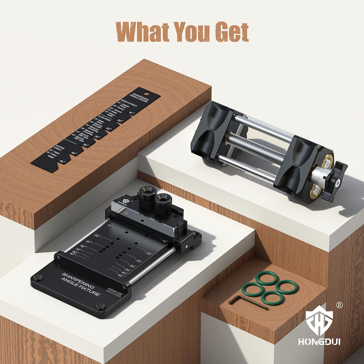 • 【Auto-Lock Angle Fixture】HONGDUI sharpening angle fixture with built-in positioning block: just adjust to your desired angle(15°–47°) , it locks automatically, no guesswork. Parallel dual rails deliver absolute precision for fast positioning.