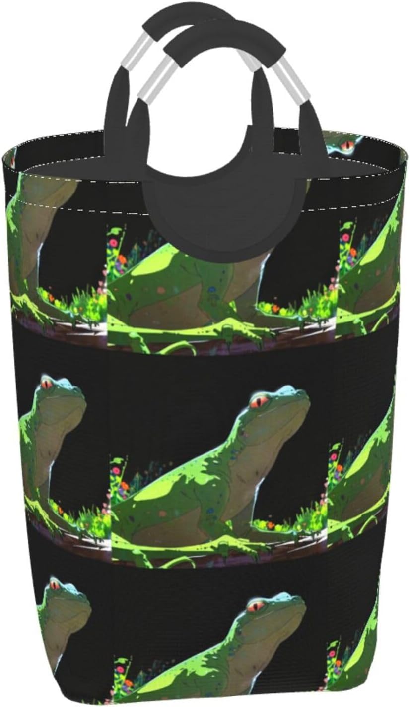 Our Lizard looking up at the sky dirty clothes storage bag is made of polyester, which is lightweight and flexible. It can maintain a stable shape even under heavy pressure and collision. At the same time, the incorporation of Oxford cloth material significantly improves the durability of the product, and it is resistant to wear, bumps and pulling. The storage bag is designed with a large capacity, which can easily carry winter clothes, daily clothes and a variety of sundries. It is easy to carry and store, and fits tightly into the gap of the suitcase after folding. The aluminum handle is sturdy and reliable, supports hanging, and is suitable for a variety of places. In terms of design, it adopts leak-proof technology, combined with waterproof coating and precision sewing, which is effectively waterproof. The exterior uses cutting-edge transfer technology, and a PE board support is added at the bottom to ensure stable load-bearing and prevent tipping. This storage bag is practical and easy to use, and is an ideal choice for travel and home.