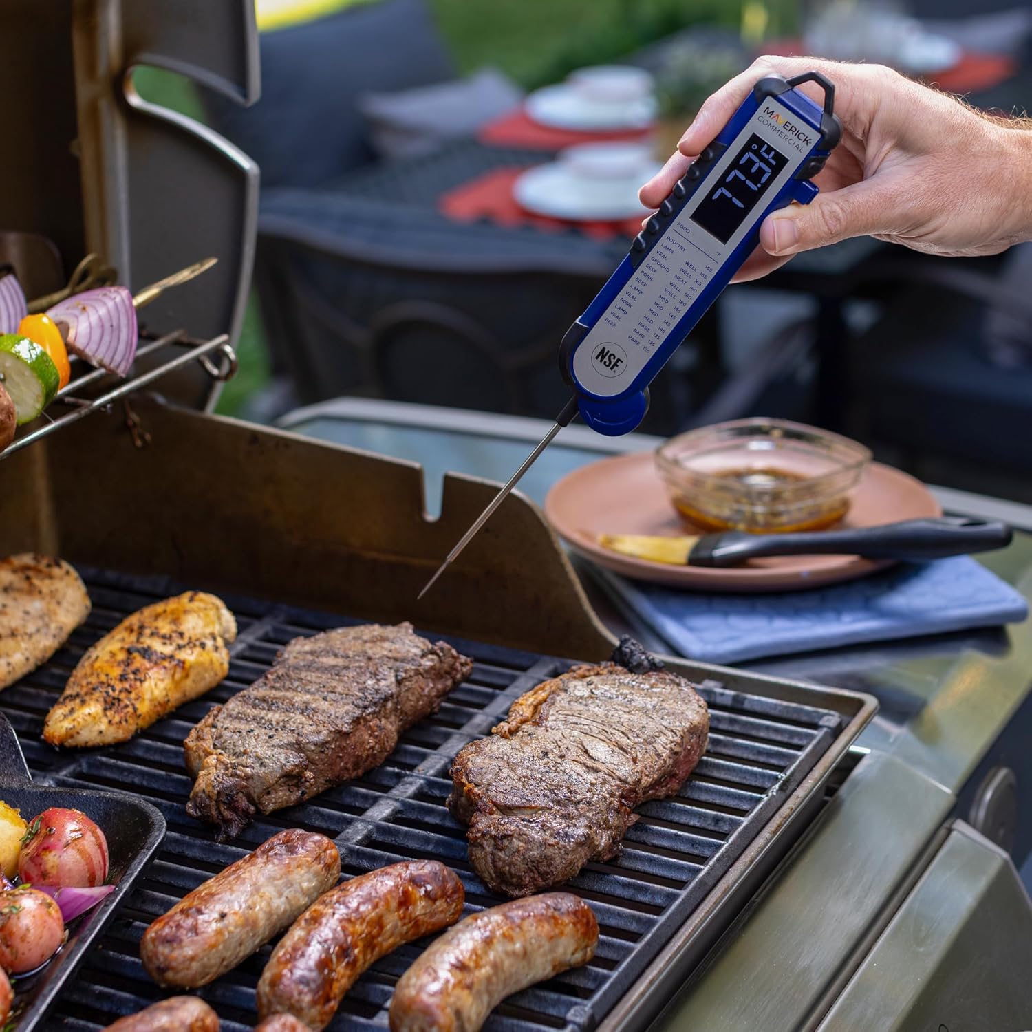 Founded in 1981, Maverick has built a strong reputation as an innovator in premium consumer cooking products, offering a wide range of digital and analog cooking thermometers designed for grilling, roasting, candy-making, deep-frying, and more. Maverick is best known as the inventor of the modern wireless food thermometer—an industry-changing innovation that made it easier than ever for home cooks and grill masters to achieve perfect results. With a continued focus on quality and innovation, Maverick remains a trusted leader in smart cooking solutions. The Maverick Pro-Temp Professional Thermocouple Thermometer is the ultimate tool for professional and residential kitchens alike, delivering precision and reliability that chefs can trust. Its Type K thermocouple with a stainless steel micro-tip probe provides extremely accurate readings to ±0.7°F, while the high-contrast backlit LCD with large 0.5” digits ensures easy viewing, even in busy kitchen environments. Designed for durability, the thermometer is water, dust, and shock-resistant, NSF certified, and includes a built-in meat temperature chart for quick reference. With a wide temperature range from -40°F to 662°F, auto on/off, temperature readings to 0.1°, and a factory calibration certificate to NIST standards, this thermometer combines speed, accuracy, and convenience for worry-free cooking every time.