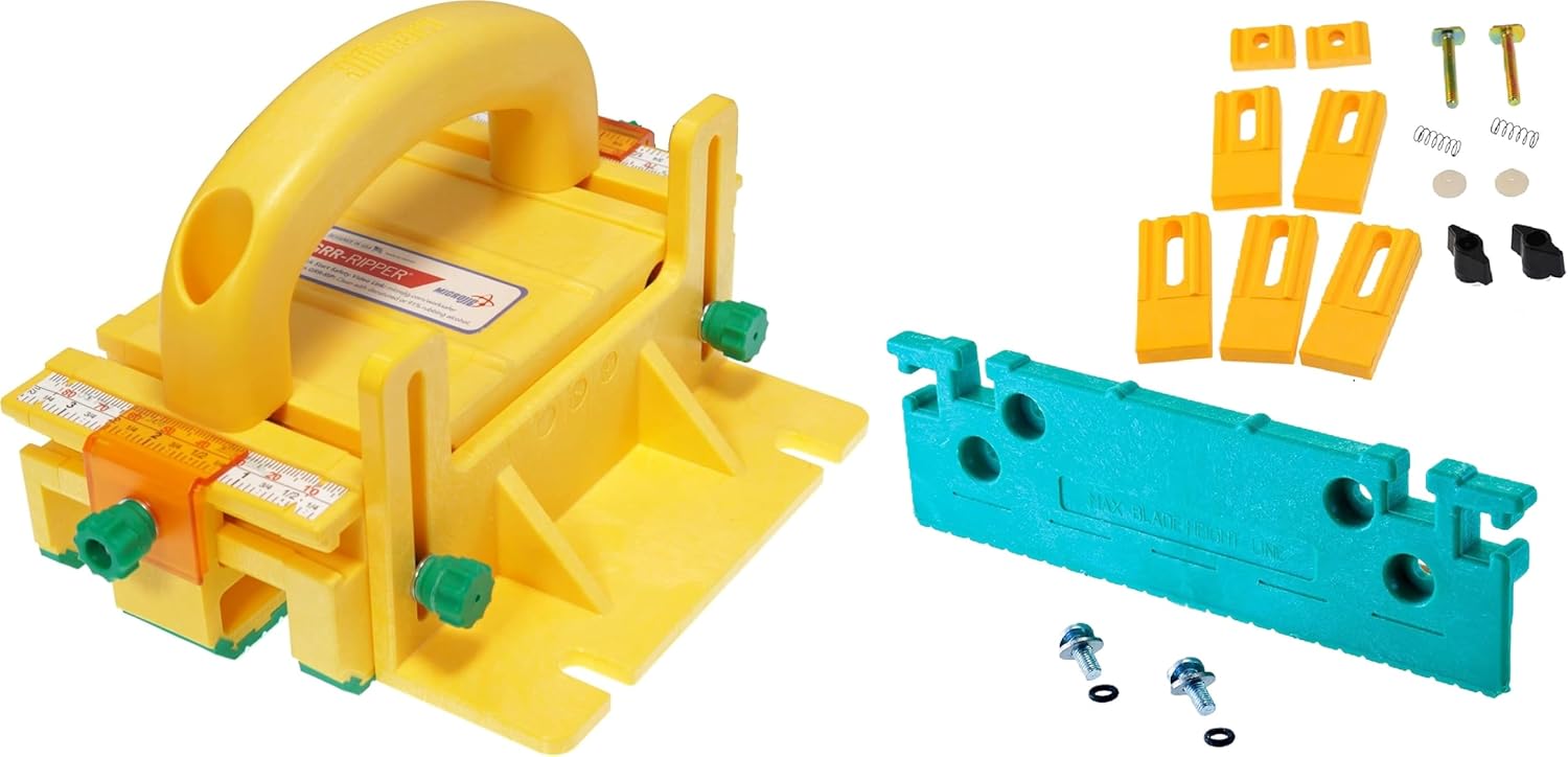 Take your woodworking safety and precision to the next level with the GRR-RIPPER+ Safety & Precision Bundle by Microjig. This 3-piece bundle includes the GRR-RIPPER+ 3D Pushblock, the Gravity Heel Kit, and the 1/8" Leg Accessory—everything you need to handle rip cuts, small workpieces, and long stock with unmatched control and safety. Discover the complete safety, productivity, and creativity of your woodworking and DIY projects with the GRR-RIPPER+ by Microjig. This must-have tool for table saws prevents kickback, provides superior Control of parts, and keeps fingers clear of the bits and blades that can injure you. It now includes the new innovative SafeRip Kit, which prevents accidental blade contact with the tool for cleaner, faster cuts. The GRR-RIPPER Gravity Heel Accessory offers a fully adjustable heel with auto-retracting technology, enhancing control and stability during routing, bandsaw, and table saw operations while minimizing blowout and tear-out. Ideal for use with long or short stock, the Gravity Heel ensures smoother, safer, and more precise cuts. With the GRR-RIPPER 1/8" Leg Accessory, designed for consistent 1/8" thin rips on table saws, achieve unparalleled precision in your woodworking projects. Enhance your GRR-RIPPER and woodworking capabilities with this versatile, secure, and easy-to-maintain accessory.