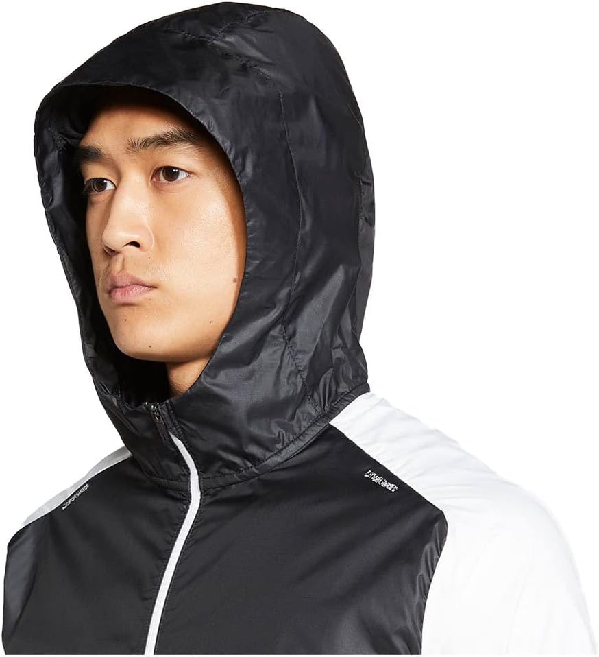 Machine Wash lightweight, weather-resistant fabric Nike Shield fabric resists elements like wind and water Hand mittens help extend coverage to keep you warm. They can be packed into the sleeves when not in use. Pockets help keep your gear secure. The zippered hand pockets have an attached woven pull for easy open and close. Extra drop-in pockets can be found under the chevron. When you need to layer down, the jacket can be packed and stored in the front pocket.