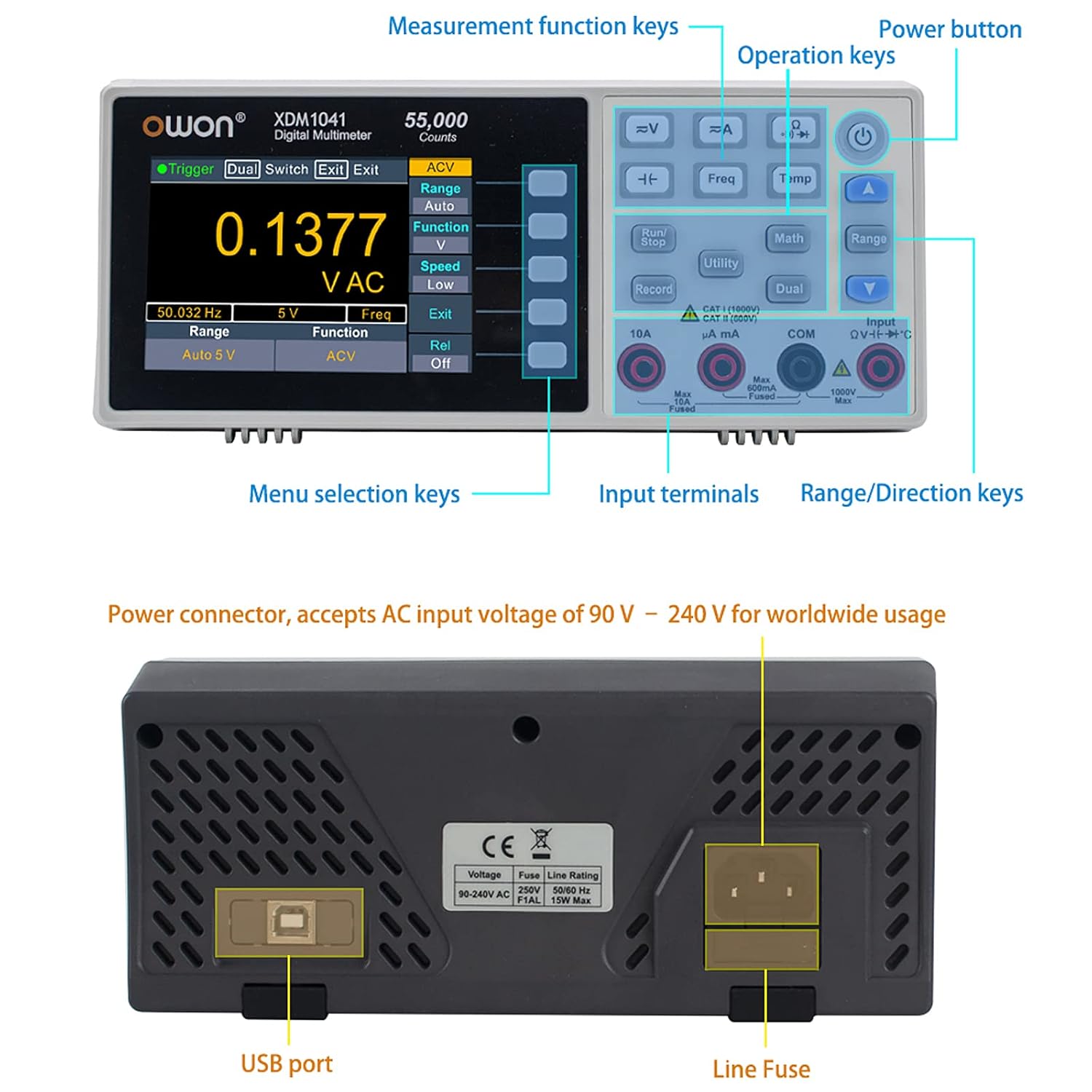 Mini Desktop Digital Multimeter, 3.7in LCD Mini Digital Multimeter True RMS Temperature Tester Meter XDM1041 ♛ Functions : Can test AC / DC current, AC / DC voltage, resistance, capacitance, etc, with diode testing, continuity, temperature and other functions. ♛ Features : Up to 65 readings per second, support for two ‑ line display, support SCPI, maximum display 55000 counts. ♛ Good Design : With 3.7in high resolution LCD digital display screen, it is more clear and convenient to measuring datas. ♛ Clear Reading Function : This instrument has stable performance, high accuracy, high reliability, clear reading function. ♛ Application : An excellent tool for instruments and laboratories, factories, radio enthusiasts and families. Feature: 1. This instrument has stable performance, high accuracy, high reliability, clear reading function. 2. Can test AC / DC current, AC / DC voltage, resistance, capacitance, etc, with diode testing, continuity, temperature and other functions. 3. With 3.7in high resolution LCD digital display screen, it is more clear and convenient to measuring datas. 4. An excellent tool for instruments and laboratories, factories, radio enthusiasts and families. 5. Up to 65 readings per second, support for two ‑ line display, support SCPI, maximum display 55000 counts. Specification: Item Type: Desktop Multimeter Material: ABS Color: As shown in the picture How to Use: 1: Plug in the test lead, the negative terminal of COM is the negative electrode and connect to the black test lead and red test lead (insert the interface for measuring voltage or current according to need) 2: Connect the power 3: Press the switch power supply to turn on 4: Press the corresponding button according to the voltage and current you need to measure Package List: 1 x Desktop Multimeter 2 x Test Leads 2 x Clip 1 x Instruction Manual 1 x Protective Tube Note: Monitors are not calibrated same, item color displayed in photos may be showing slightly different from the real ob