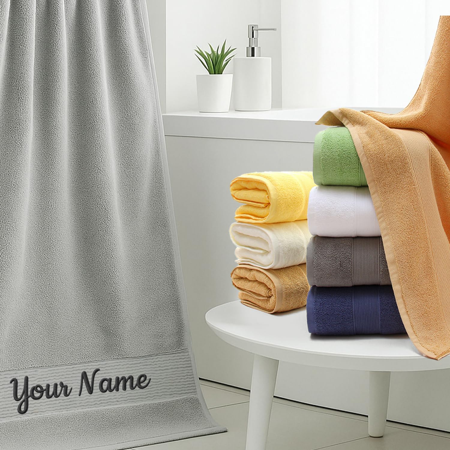 Personalized 3-Piece Towel Set – Monogrammed Cotton Towels with Name or Initials This customized towel set includes: 1 Bath Towel (74×140 cm / 27.6×55.1 in) 1 Hand Towel (34×74 cm / 13.4×29.1 in) 1 Wash Cloth (34×34 cm / 13.4×13.4 in). Crafted from 100% premium cotton, these towels are super soft, highly absorbent, and durable, ideal for everyday use. Personalized with embroidered name or initials, making them a perfect choice for bathroom, spa, pool, gym, hotel use, as well as thoughtful gifts for weddings, anniversaries, bridal showers, housewarming, or new home celebrations.