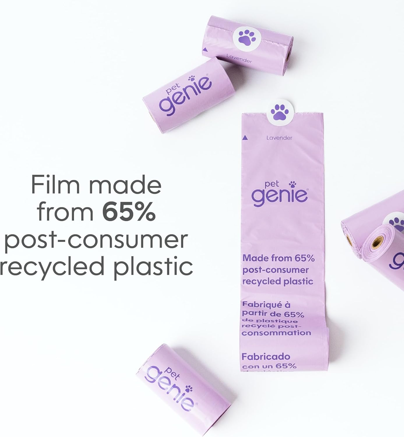 The Pet Genie Pail Bundle offers a complete, convenient solution for everyday dog poop cleanup at home or on the go. Designed to work together from pickup to disposal, this bundle combines the Pet Genie Dog Waste Disposal System with 120 Pet Genie leak-proof poop bags, helping simplify cleanups while keeping odors contained. Whether you’re picking up after your dog in the backyard or during walks, the process starts with the poop bags for easy, hygienic pickup. Waste can then be disposed of in the pail, helping reduce daily trips to the trash while also solving the issue of storing dog waste until garbage day. The Pet Genie dog waste disposal pail is suitable for both indoor and outdoor use and crafted from rugged, UV-protected plastic for everyday durability. Its wide opening makes disposal simple—using poop bags or by scooping waste directly into the pail—while a sliding lever helps lock waste and odors inside, minimizing unpleasant smells. Lightweight and easy to move, the pail features a top handle that helps keep the lid secure and allows you to carry it wherever it’s needed. With a capacity of up to 15 medium dog diapers or 7 training pads, it adapts easily to the needs of puppies, adult dogs, and senior pets. The pail includes 1 starter refill (14 ft) made from multi-layer film with odor-locking barrier technology, which can be cut and tied to the desired length for flexible, customized use and can last up to 2 months for one medium dog. Completing the system are 120 Pet Genie leak-proof poop bags (8 rolls), designed for reliable, mess-free pickup during walks, backyard cleanups, or outings. Each 9" x 13" bag offers ample coverage for dogs of all sizes and is made from 65% post-consumer recycled plastic, with a light lavender scent to help mask unpleasant odors. Together, the pail, refill, and poop bags create a complete dog poop cleanup solution that reduces mess, helps control odors, and simplifies daily routines. From the makers of Litter Genie.