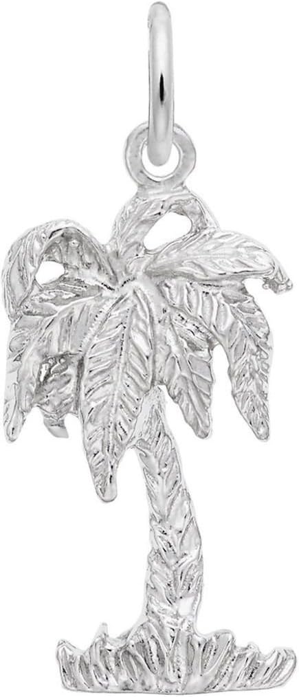 Palm tree charm by Rembrandt. Measures approximately 0.84 inches x 0.48 inches (21.36mm x 12.21mm). Available in several metals.