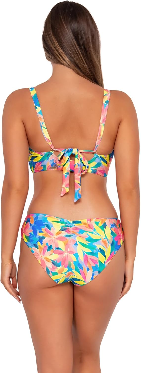 Never enough versatile bottoms! The Alana Reversible Hipster boasts a scrunch rear detail, clean seams, and a smooth front. Reversible in select prints. Subtle details enliven classic bikini bottoms. Sizes range from XS to XL. Low rise for tummy-baring days. Moderate coverage for confident curves. Top sold separately, choose your color, fit, and coverage. Fabric: 87% Recycled Nylon, 13% Spandex.
