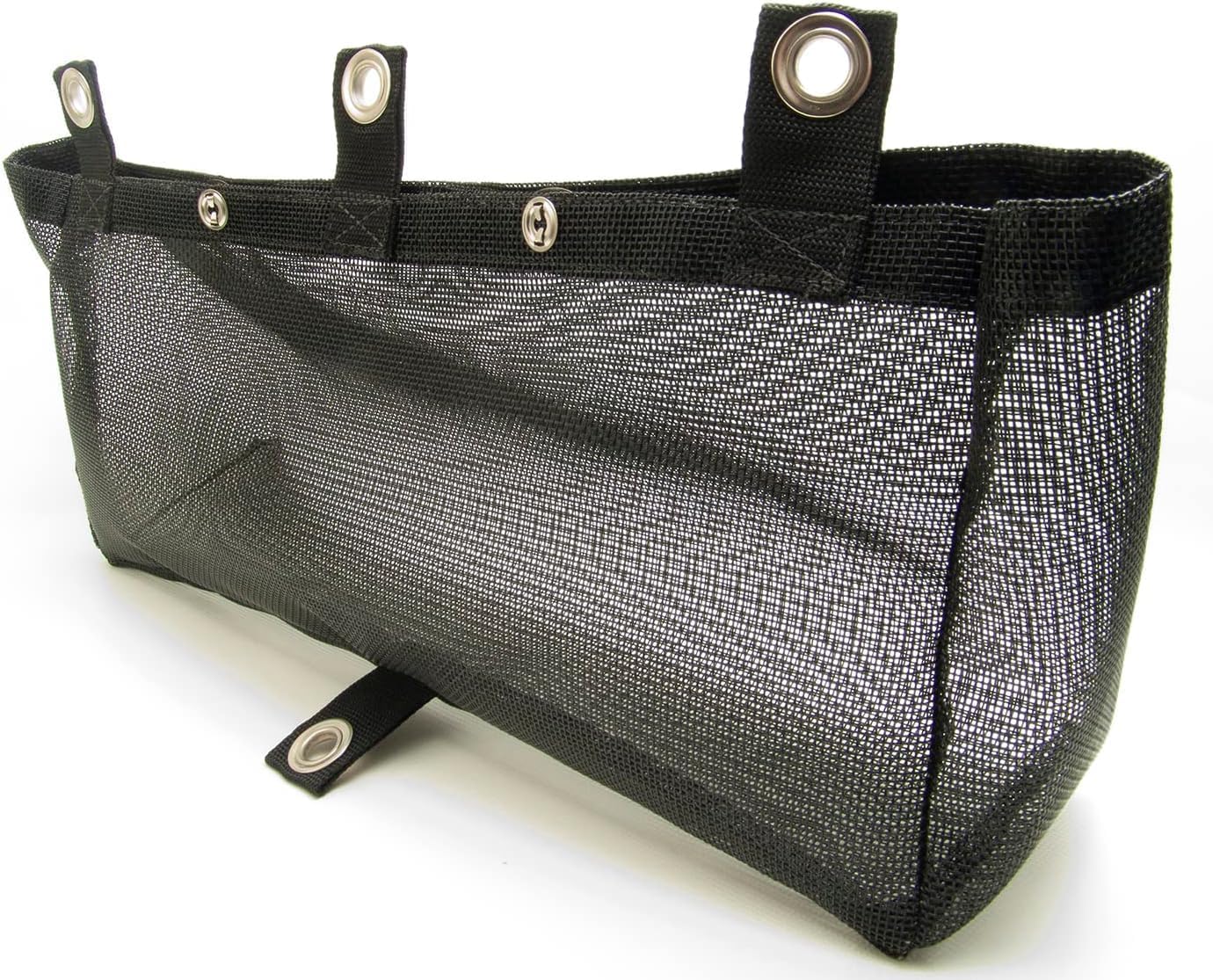 Brand new black mesh bag for storing ropes, shoes, wet clothing or anything you need to stow away quickly. The back side is designed for a rail, wall or bulkhead mounting with three heavy duty rolled rim spur grommets along the back top edge of the bag. Another grommet at the bottom of bag to help prevent flailing during high winds or seas. 100% waterproof breathable fabric this bag will allow air to pass through freely. The bag dimensions are 20" wide, 9" tall, 5" depth. This mesh bag has two Turn Button fastener for closure at the top. Rope not included. We make our own products right here Ferndale, Washington. Questions? Design ideas? Give us a call 360 543 6255.