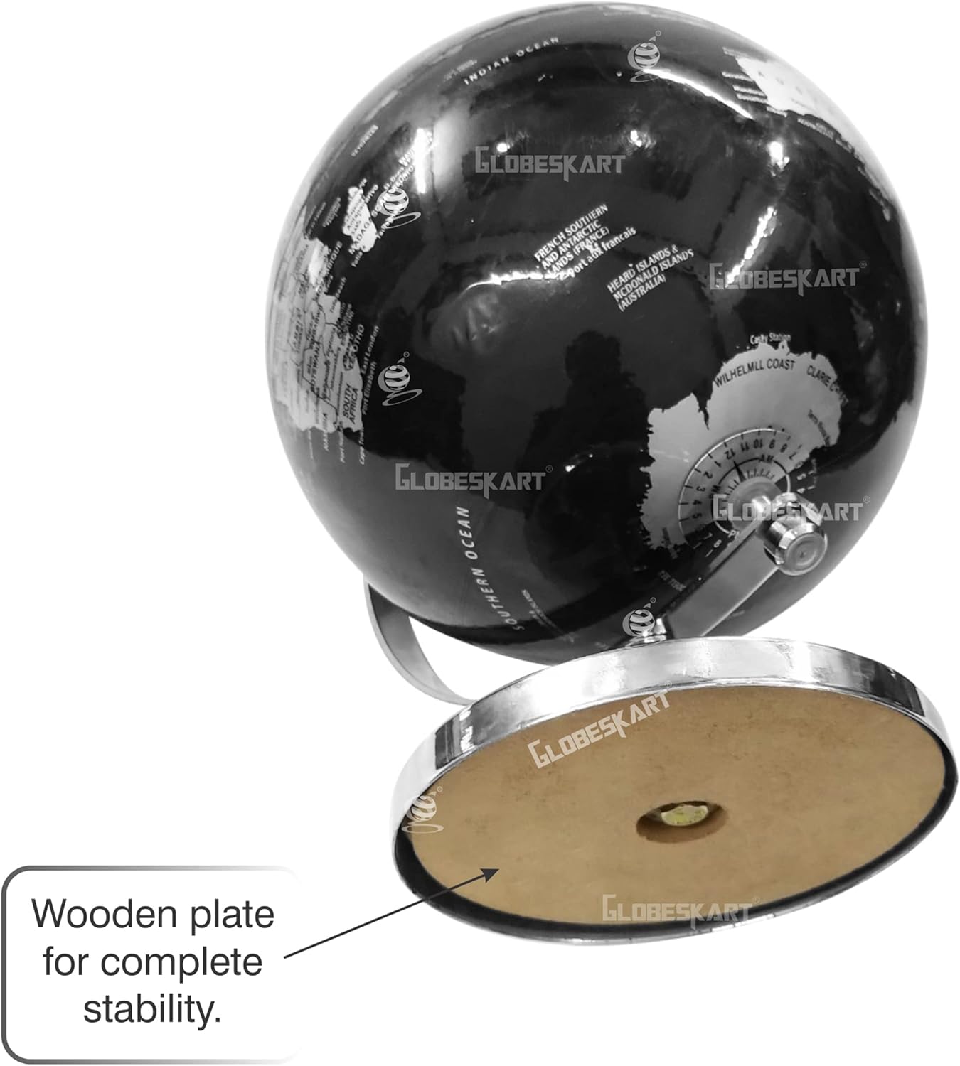 Antique world globe that rotates pretty much like how our earth does. You can put it on a flat surface, like your office desk or your study table, and have the world at your fingertips for endless journeys of fun and learning. Durable and Portable Thoughtfully designed from recycled plastic, this rotating globe with an arc and base is sturdy and durable. Moreover, its compact size and lightweight design, makes it convenient to carry from one place to another. It is a piece of art.