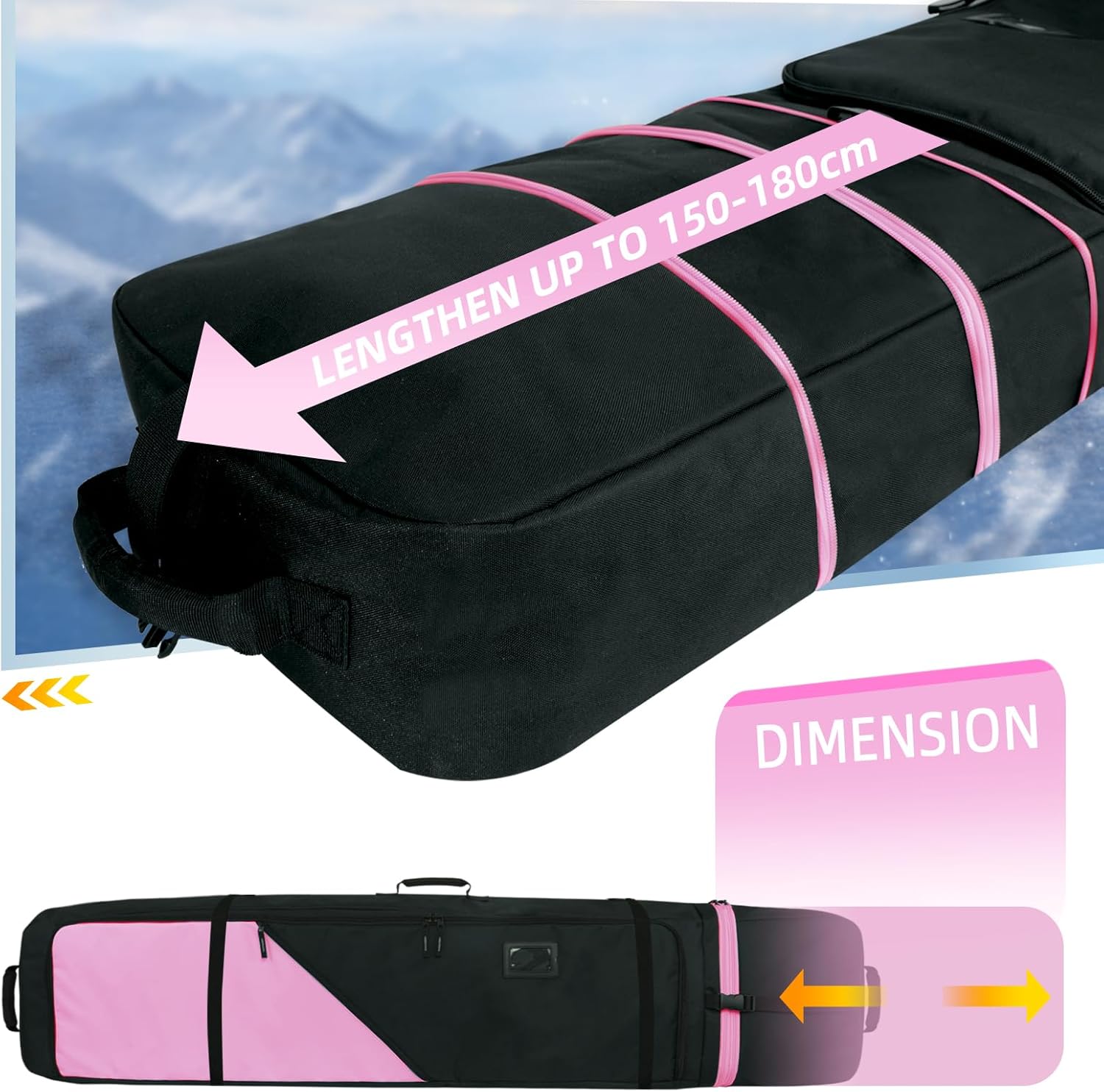 Protect your winter sports equipment with this versatile ski travel bag from TVDARMO. Designed to accommodate skis ranging from 150-180cm, this padded storage case offers reliable protection during air transport and storage. The waterproof construction shields your gear from moisture, while the geometric pattern adds a stylish touch. Featuring an adjustable strap system for comfortable carrying and a convenient utility pocket for accessories, this bag is perfect for both skiing and snowboarding enthusiasts. The durable polyester construction and secure zipper closure ensure your equipment stays protected throughout your journey. The compact package make it easy to store when not in use. Whether you're heading to the slopes or storing your gear during the off-season, this ski bag delivers the protection and convenience you need.