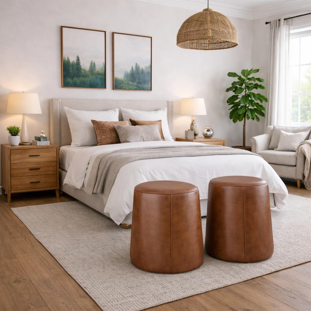 Bring soft, sculptural style into your space with this teardrop-shaped ottoman, designed with an organic, rounded silhouette that feels both modern and effortlessly relaxed. Thoughtfully crafted for comfort and everyday use, this ottoman brings form, function, and artistic style together in one beautiful piece in a warm, chestnut faux leather.