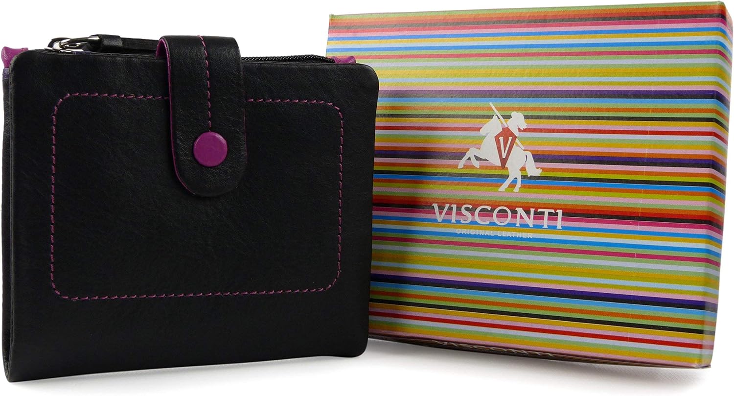 This is a Smaller Soft Leather Tabbed Bi-Fold Purse/Wallet brought to you by Visconti suppliers of Superb Leather Goods.As you can see this Purse, from their NEW for 2014 Mimi Collection is available in 3 gorgeous Colour Combinations Black Multi, Red Multi or Orange Multi.Visconti are committed to delivering unmatchable quality with each and every product manufactured to the highest possible standard.Dimensions: Approx: 11.5cm x 9cm (4.5" x 3.5")