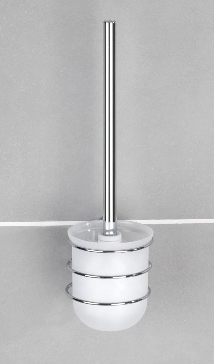 Open toilet brush holder, ideal for bathroom and guest toilet. Toilet brush with replaceable brush head with a diameter of 8,5 cm. Made from high-quality chromed steel. Incl. screws and dowels. Alternatively to be fixed without drilling: with Vacuum-Loc, Turbo-Loc or Power-Loc adapters.