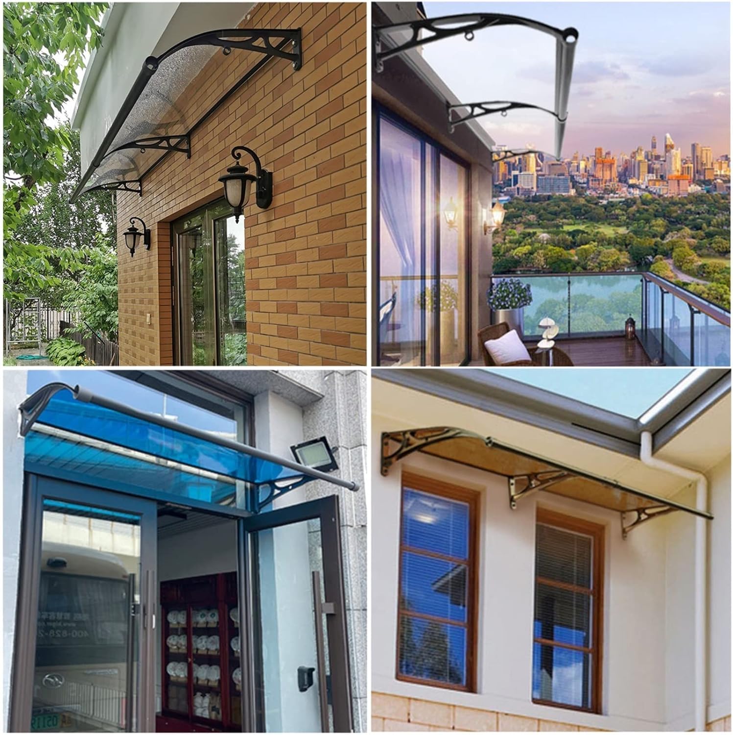 ★ The exquisite door canopy will not only enhance the appearance of your property, but also protect your doorway or window from precipitation without blocking the light.★ Features:-- It has good light transmittance, flame retardancy, UV resistance, rain and snow resistance, strong impact resistance, light weight and good sound insulation.-- The humanized small clothes drying hole design can help you solve small problems in life and make your life more comfortable.-- The canopy is easy to assemble when you need it, and with the included splicing strips, they are joined together without any gaps, enough to hold a lot of people and a great choice for shelter from the rain.-- It has super-weather ability,which maintains excellent performance in wide temperature range from -40° -120°.★ Specification:-- Material: polycarbonate-- Fixing Bars Material: Aluminum-- Size:(LxWxH)80/100/120/200/300x60/80x16/23cm(31.4/39.3/47.2/78.7/118.1x23.6/31.4x6.2/9in);-- Do you need assembly: Yes★ Combination of product panel color and bracket color:-- A: Brown + black-- B: transparent + black-- C: blue+black-- D: brown + champagne gold-- E: transparent + champagne gold-- F: blue + champagne gold★ Package includes:-- 1 x polycarbonate cover/2 x polycarbonate cover/3 x polycarbonate cover-- 2 x brackets/3 x brackets/4 x brackets★ Notice:1. Please measure the size of your window or door before making a selection.2. Regularly check all accessories and connections. If loose, tighten.3. Product color may vary slightly due to photographic light source or your monitor settings.4. Please allow 1-3 cm error due to manual measurement and make sure you do not mind this before ordering.